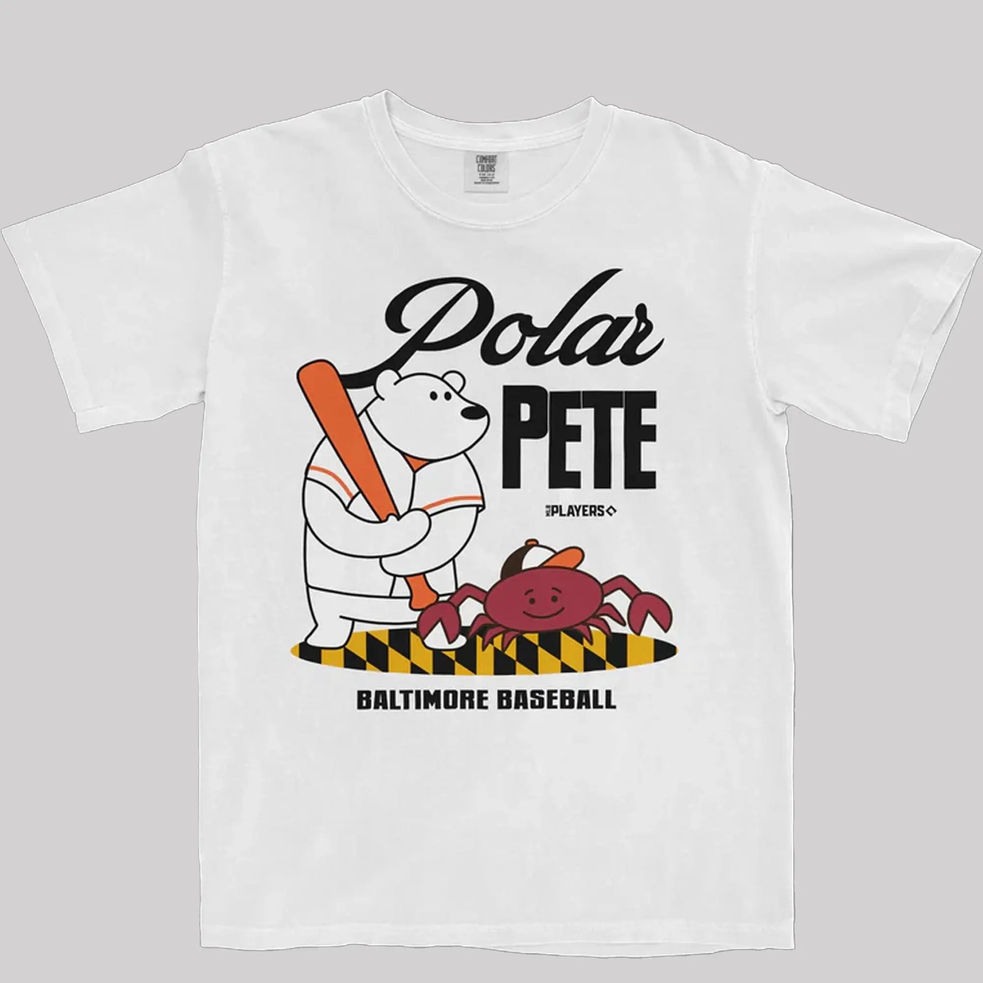 Step up to the plate with the Polar Pete Players Baltimore Baseball Shirt, a bold graphic tee designed for fans who love baseball, Baltimore, and playful, character-driven streetwear. This eye-catching shirt features a cartoon polar bear slugger holding a bat alongside a friendly crab perched on a Maryland flag–inspired pattern, framed by the text “Polar Pete,” “Players,” and “Baltimore Baseball” for instant local pride and baseball energy.