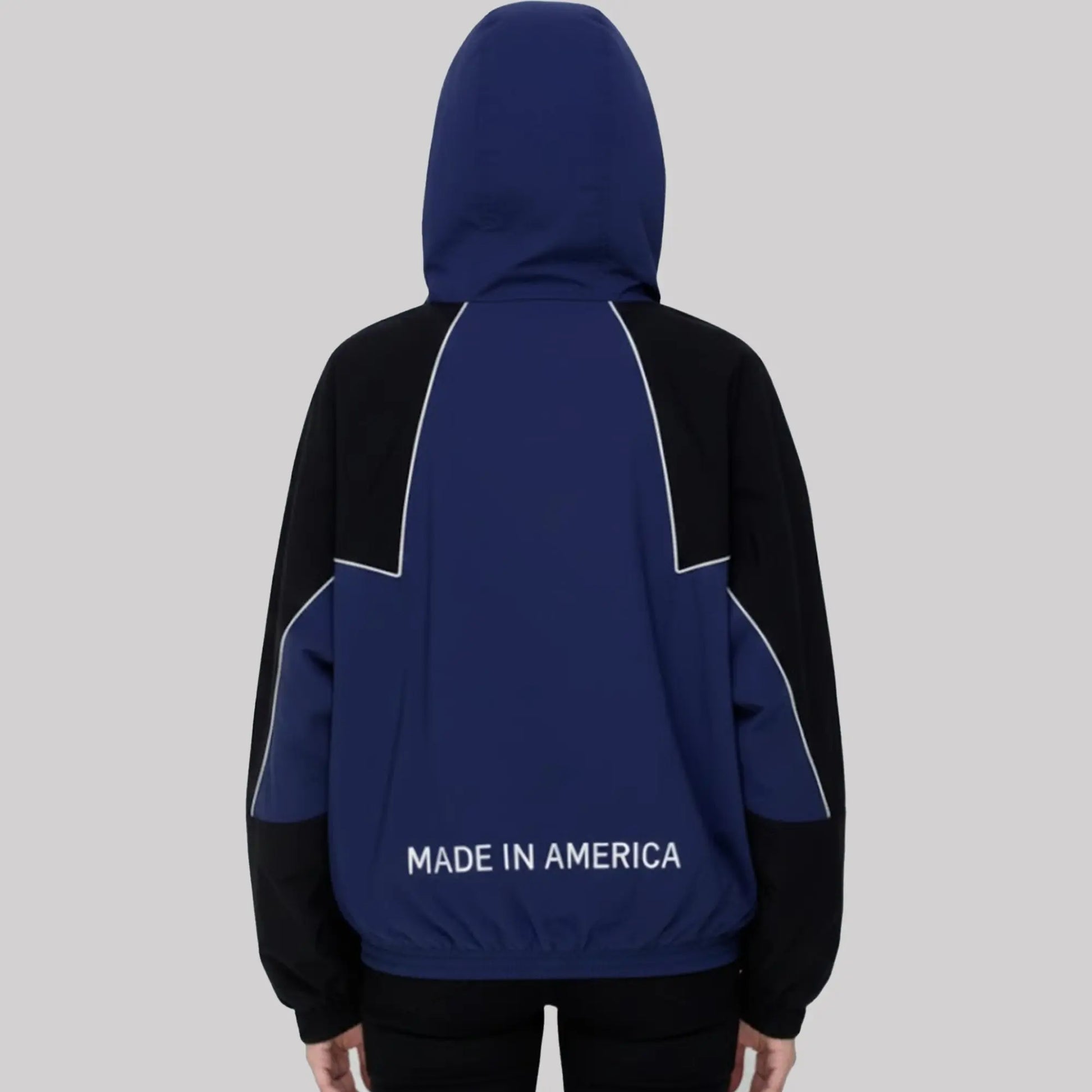 The front of Susan Boyle’s Marty Supreme jacket is a bold navy and black , with large white lettering spelling “MARTY SUPREME” across the chest and three bright orange stars that draw attention to the center, giving it a dynamic, fan‑merch feel. The back continues the color‑blocked design, with navy panels framed by black shoulders and sleeves with the words "MADE IN AMERICA", creating a structured, athletic silhouette that looks both modern and comfortable. When Susan wears this jacket in the post, the confident slogan, vibrant stars, and relaxed fit together highlight her joy and self‑assurance, turning the piece into a positive symbol of appreciation, inter‑generational support, and the idea that pop culture can celebrate and uplift artists at any age.