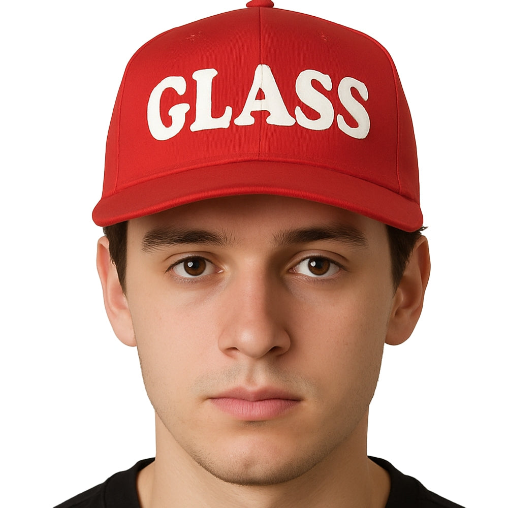 Tyler Glass Hat – Bold Red Baseball Cap with Iconic “GLASS” Print